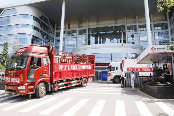 yabo鸭脖官网物资车抵达华容县物资接收点
